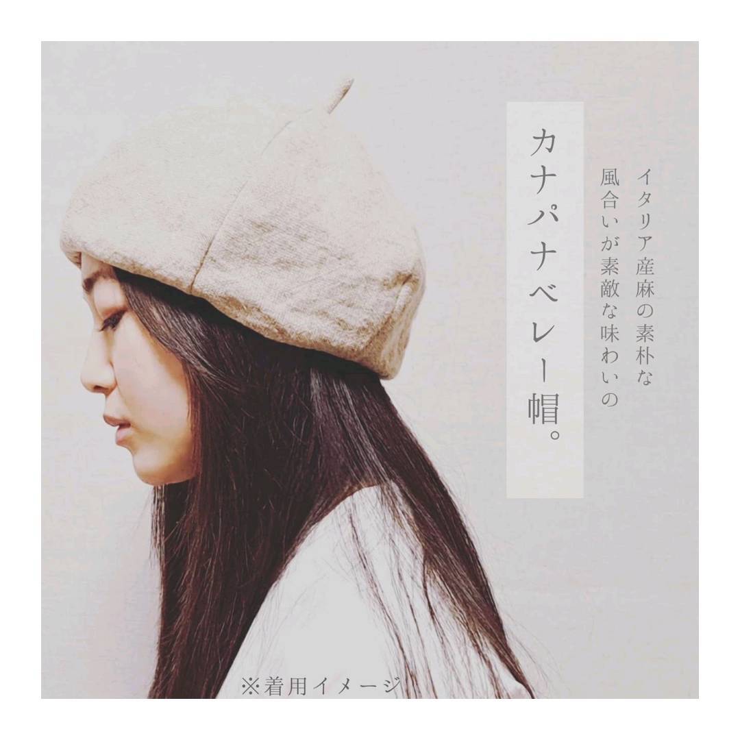 Canapa(カナパ/カーナパ)は「麻」を意味するイタリア語。イタリア産の麻で織られた素朴な風合いの味わいのある生地を使用して作ったベレー帽。素材の持つ特徴やそのままの風合いを生かしたいから接着芯等を使用せずに仕上げています。
