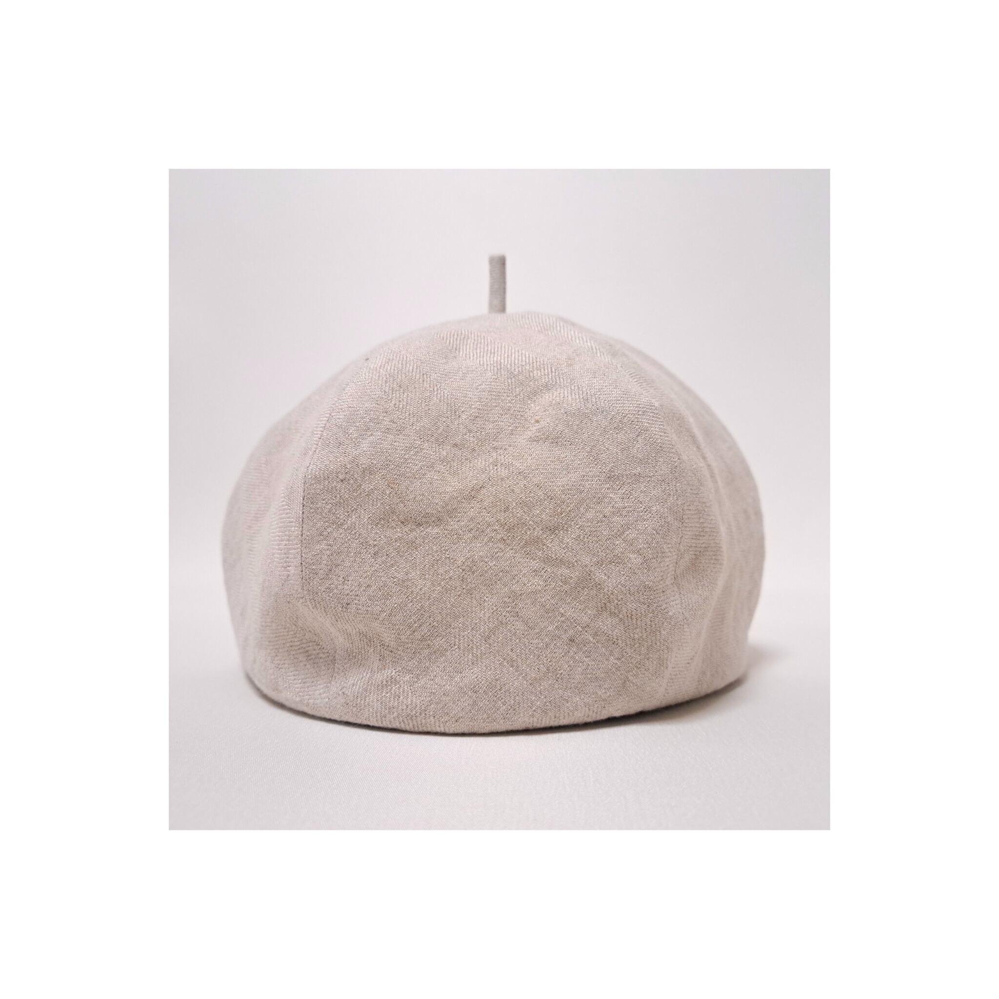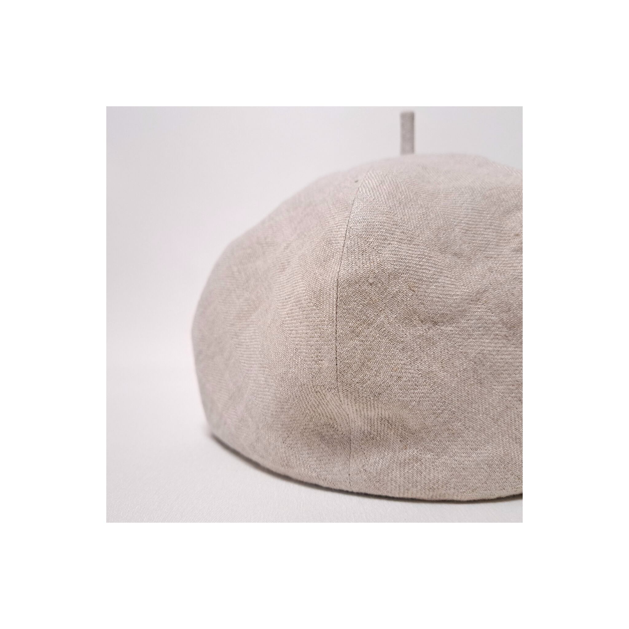 リネンのヘリンボーン柄を使った少し大人っぽいベレー帽。洗いをかけた麻のくったりとした風合いをそのまま生かして気取らない大人のカジュアルベレーに仕上げています。